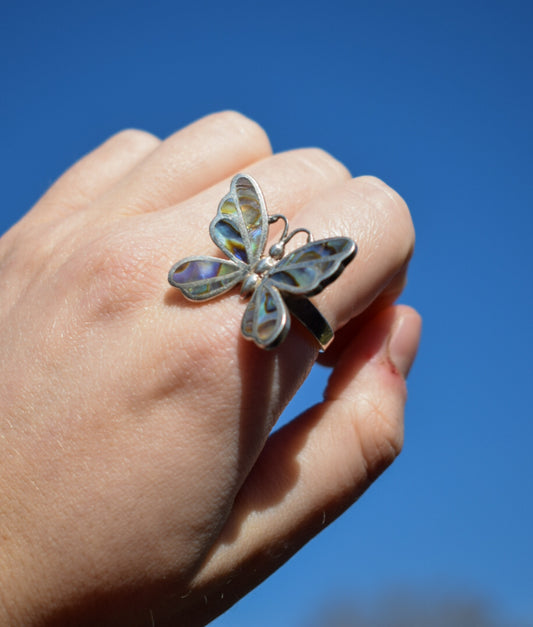 Abalone Butterfly Ring Size O