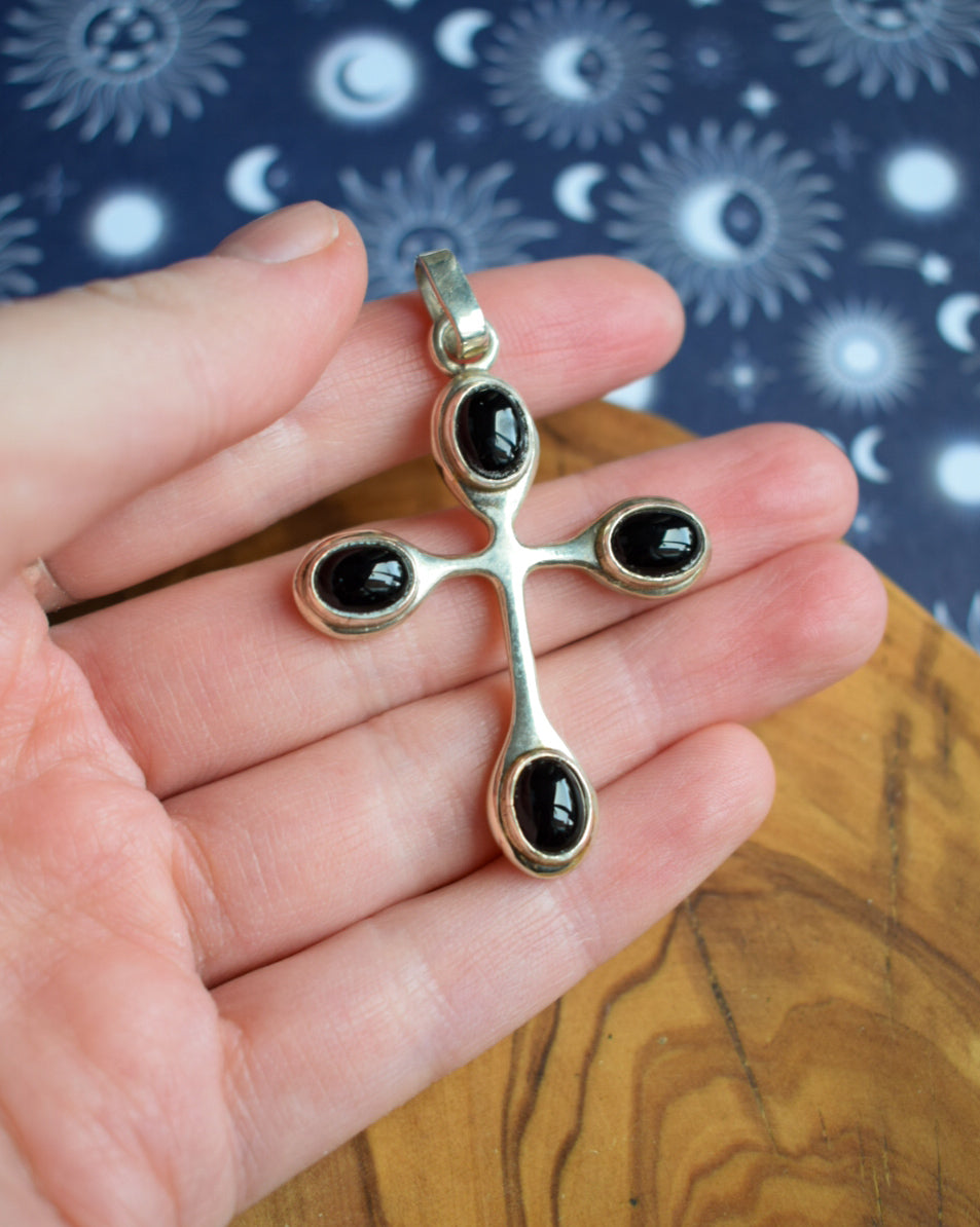 Gorgeous Sterling silver onyx cross pendant. Has several markings inside the bale. Measuring 2.1 inches long. A beautiful sentimental piece to add to your collection.