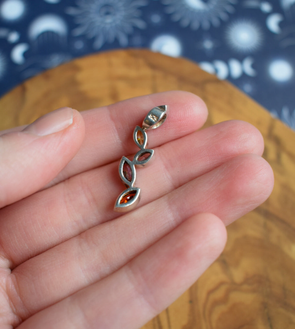 Gorgeous Sterling silver gemstone pendant measuring 1 inch long. Has citrine, garnet, amethyst and more incased in sterling silver.