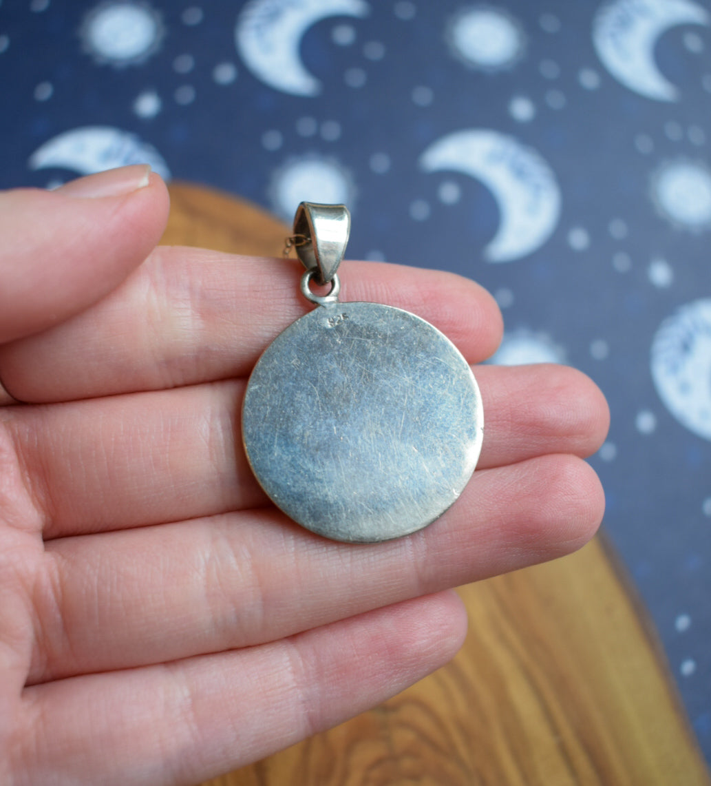 This pendant us hallmarked 925 on the reverse and comes with an 18 inch sterling silver chain.